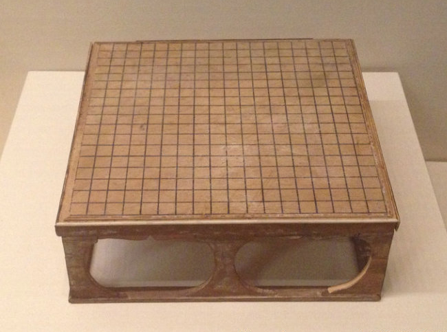 該棋盤長寬約20厘米,1973年在新疆吐魯番阿斯塔那出土。木質(zhì)不明。新疆氣候干燥缺水,不像南方潮濕,因此木制品才得以保存千年不腐。