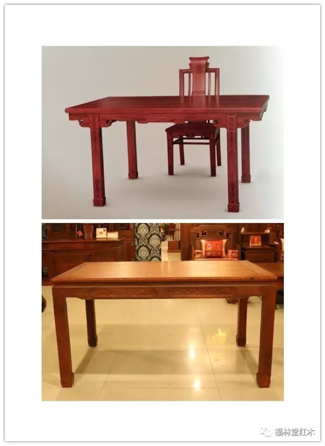 一、在形制上的區別:桌是四足頂住桌面四角的;案是四足內縮進來一部分的。下圖上半部分是案,下半部分是桌,可以仔細看看: